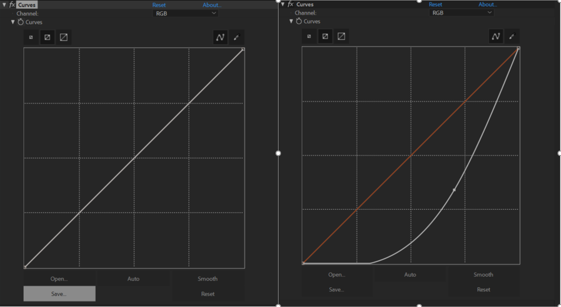 And the following image shows the very simple change made on curves effect in Adobe After Effects.